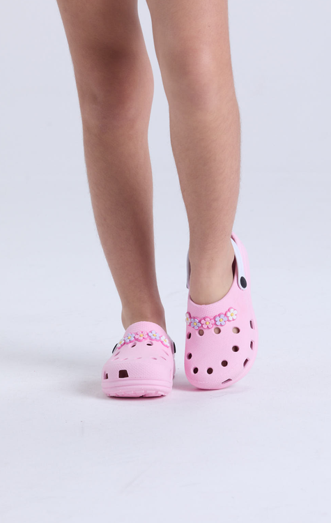 Delicadeza que encanta e conforto que acompanha em cada passo! Nossa babuche infantil rosa claro é puro charme e traz o toque mágico com apliques florais super fofinhos que deixam o look ainda mais encantador! Feita para brincar, passear e sonhar, ela conta com a tira traseira ajustável, que pode ser usada para dar firmeza ou colocada para frente, prática, versátil e cheia de estilo! Levinha, arejada e fácil de limpar, é a escolha perfeita para os dias de sol, diversão no parque ou aquele passeio especial com a família.