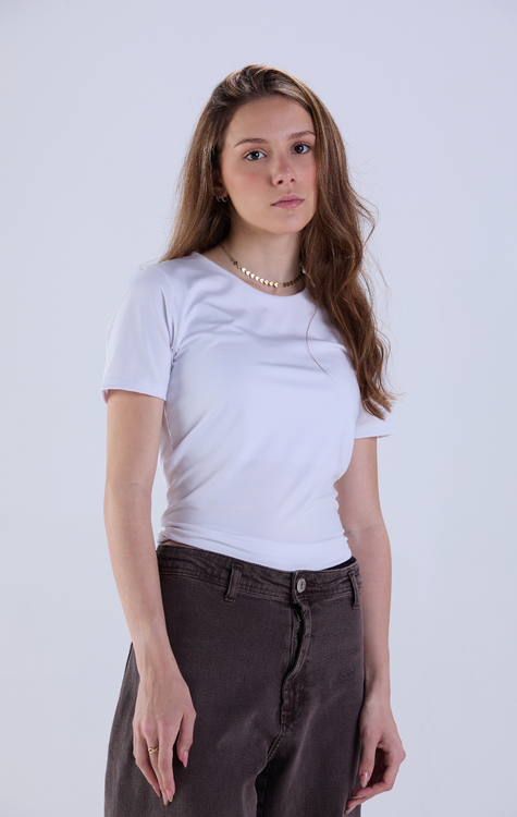 Confortável, versátil e com caimento perfeito, essa camiseta em suplex é daquelas que salvam qualquer look, do casual ao arrumadinho. Confeccionada em tecido encorpado e maleável (90% poliéster + 10% elastano), ela veste super bem, sem marcar e com aquele toque macio que a gente ama. Ideal para o dia a dia, academia ou para compor sobreposições estilosas. Disponível do PP ao GG, nas cores clássicas e atemporais: branca, preta e marrom avelã. Peça curinga, perfeita pra qualquer ocasião.