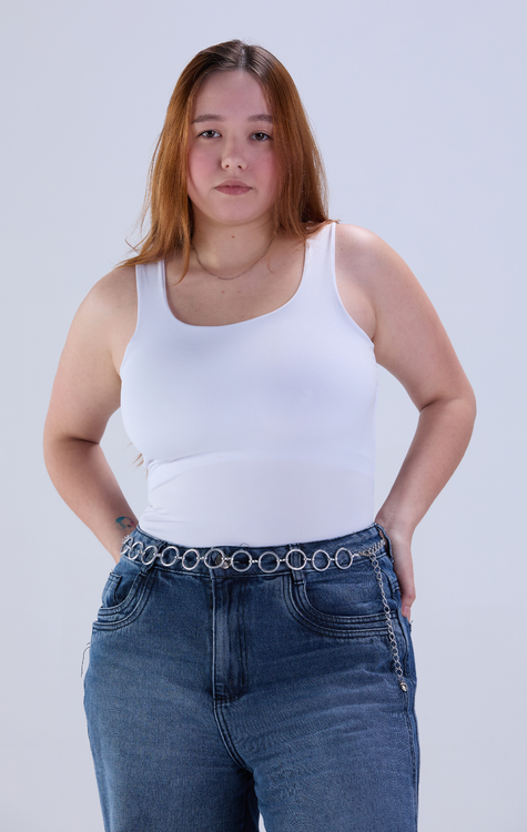Nossa regata com decote quadrado é aquele item curinga que combina com tudo, do casual ao arrumadinho. Confeccionada em tecido suplex de alta qualidade (90% poliéster + 10% elastano), ela veste com firmeza e conforto, valorizando o corpo sem apertar. O toque é macio, o caimento impecável e a elasticidade perfeita para o dia a dia. Disponível do PP ao GG, nas cores clássicas e versáteis: branca, preta e marrom avelã. Ideal para montar looks estilosos com jeans, saias ou peças em alfaiataria. É aquela peça-chave que vai te acompanhar em todas as ocasiões!