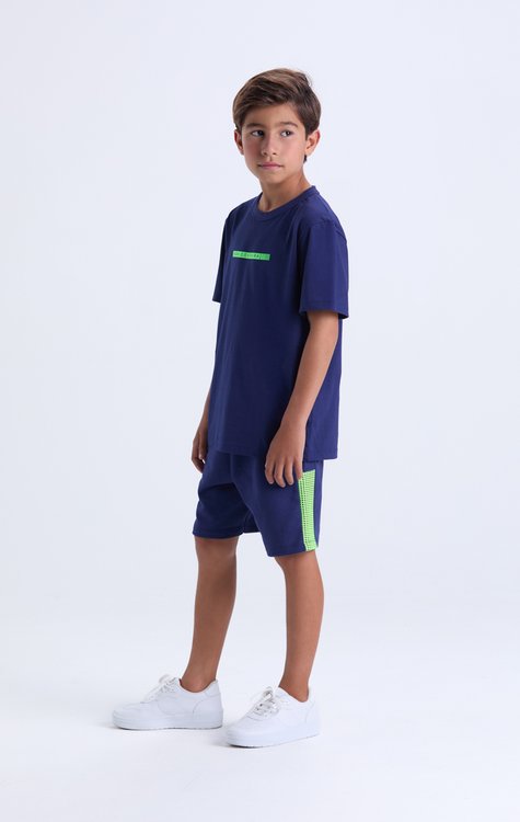 Estilo esportivo com um toque moderno para os meninos arrasarem no verão! Esse conjunto masculino infantil une conforto e personalidade com camiseta 100% algodão lisa, com estampa discreta no peito. A bermuda em moletom leve sem felpa (100% algodão) garante frescor nos dias quentes, com elástico na cintura para ajuste prático e faixa lateral em tela poly que traz um ar esportivo e atual. Disponível do tamanho 2 ao 14, é perfeito para brincar, passear e curtir. Destaques: tecido macio, modelagem moderna e versátil para qualquer ocasião.