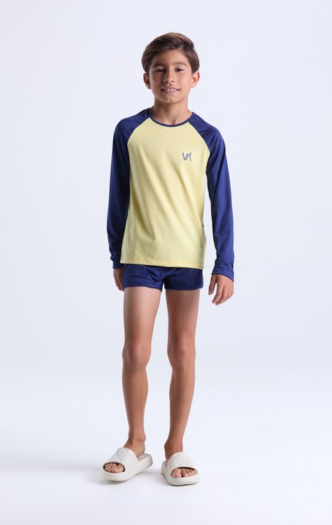 Garanta o look ideal para o verão com o Conjunto Moda Praia Masculino com Proteção UV 50+, perfeito para crianças que amam conforto e diversão sob o sol! A camiseta em suplex evidence é leve, elástica e macia, com estampa discreta “VA” e cores vibrantes. A sunga/shorts em suplex infinity, forrada com crepe, oferece segurança e conforto para brincar à vontade na água. Ideal para praia, piscina ou qualquer aventura no calor. Tamanhos: 2 ao 14. Composição: poliéster e elastano. Proteção UV 50+, tecido elástico e toque suave que acompanha o ritmo dos pequenos!