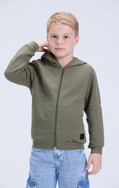 Jaqueta masculina infantil de inverno confeccionada em jaquard de alta qualidade (96% poliéster e 4% elastano), oferecendo conforto, leve elasticidade e excelente caimento. Na cor verde, o modelo possui visual moderno e sofisticado, com relevo no tecido que forma letras em efeito 3D, trazendo um diferencial exclusivo à peça. Totalmente lisa, conta ainda com etiqueta decorativa na lateral inferior frontal, agregando charme e estilo. Ideal para proteger nos dias frios sem abrir mão do visual. Disponível do tamanho 2 ao 14, perfeita para compor looks de inverno cheios de personalidade.
