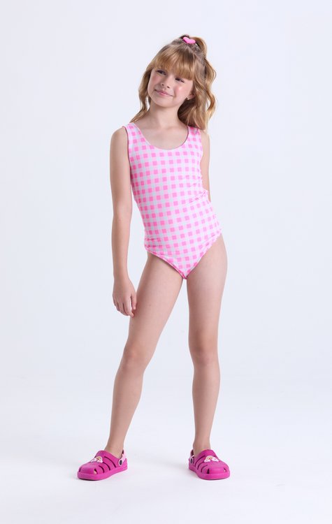 Esse maiô é perfeito para as pequenas curtirem o verão com conforto, segurança e muito charme! Confeccionado em suplex sublimado leve com proteção UV 50+, tem modelagem regata com abertura nas costas e faixa de sustentação, garantindo liberdade para brincar o dia todo com estilo. O tecido é respirável, tem toque macio e se ajusta bem ao corpo, oferecendo conforto para correr, brincar e se divertir. Possui forro interno em crepe. Ideal para meninas dos tamanhos 2 ao 14. Composição: Corpo: 91% Poliéster | 9% Elastano. Forro: 92% Poliéster | 8% Elastano.