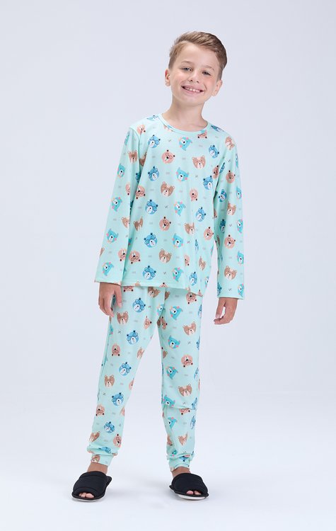 O pijama infantil masculino ideal para noites de inverno mais quentinhas e confortáveis. Confeccionado em poliplex sublimado de alta qualidade (96% poliéster e 4% elastano), oferece toque macio, elasticidade e ótimo caimento. A estampa divertida de ursinhos deixa o visual alegre e encantador. Possui blusa de manga longa e calça com elástico na cintura, garantindo liberdade de movimento e conforto durante o sono. Disponível do tamanho 2 ao 14, perfeito para acompanhar o crescimento dos pequenos com estilo e aconchego.